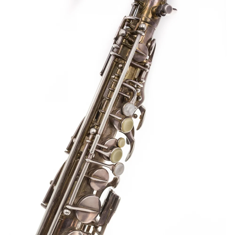 Silver plated Large Bore alto saxophone, Left side bell key, Pupeschi right hand C#/Eb, double venting, Right hand C-D trill/top E, Top F#, Double trill venting.